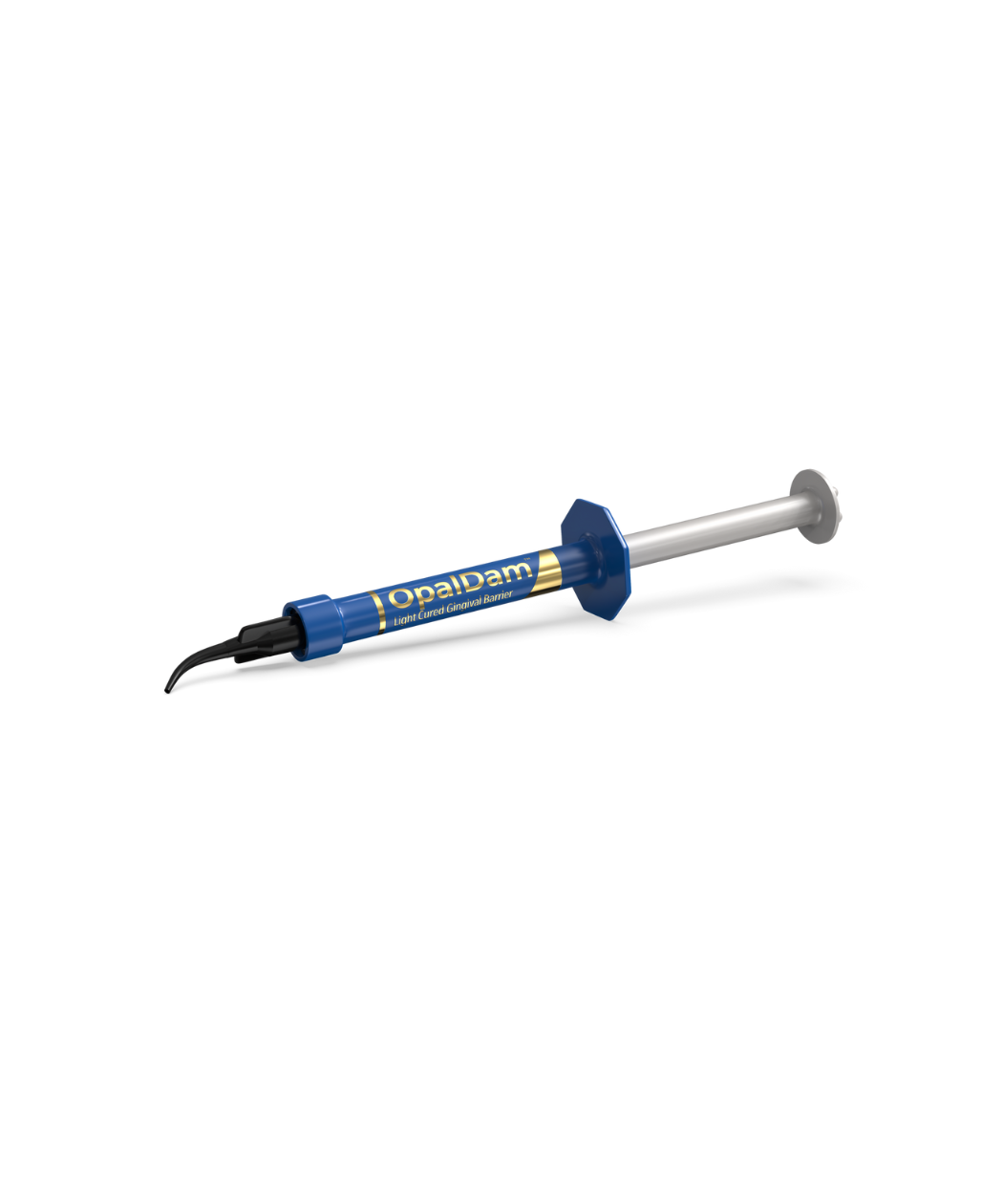 OpalDam არის მეტაკრილატზე დაფუძნებული, განათებით გამაგრებადი რეზინის ბარიერი, რომელიც გამოიყენება კბილების გათეთრებისას ღრძილების საიზოლაციოდ.